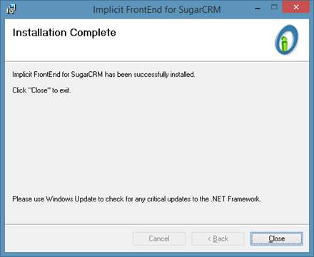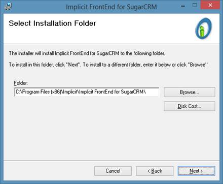 installation folder will be set to: \Program Files\Implicit\Implicit FrontEnd.