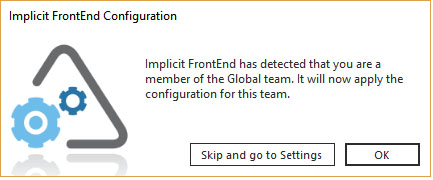 the notification below this team configuration has been detected and FrontEnd