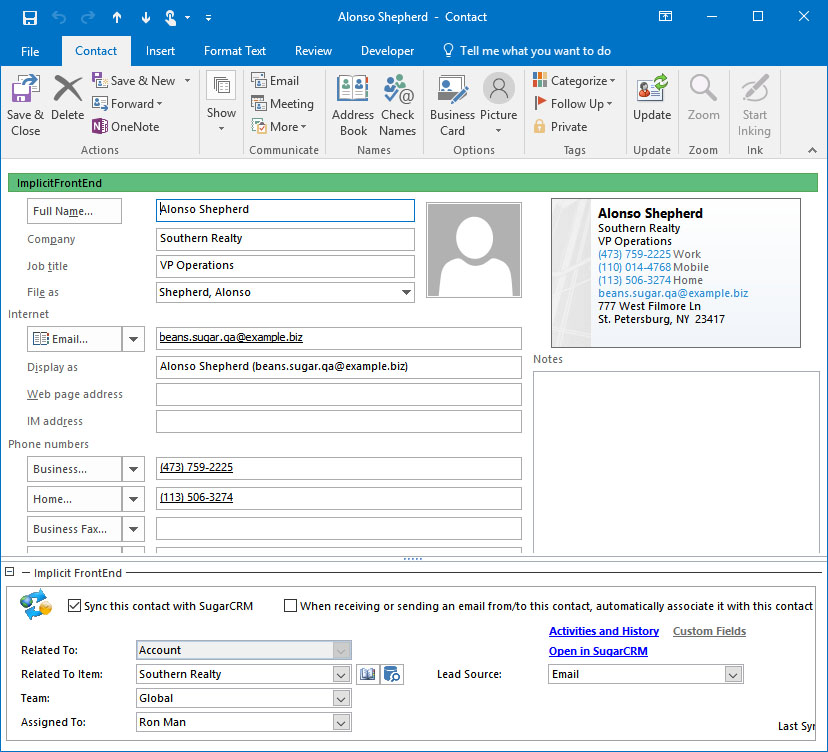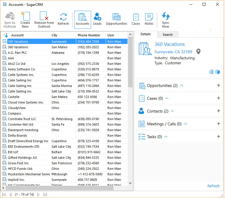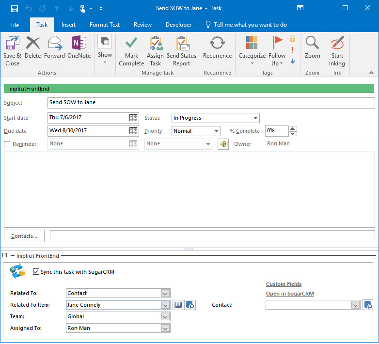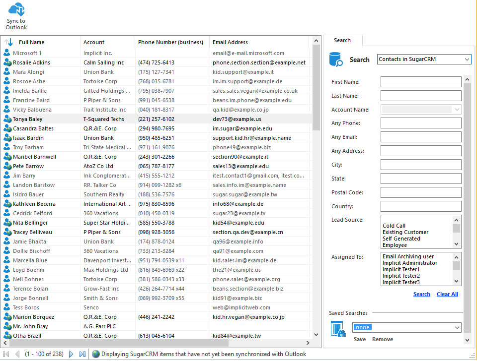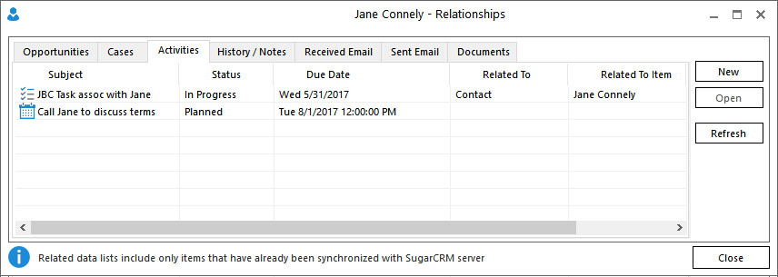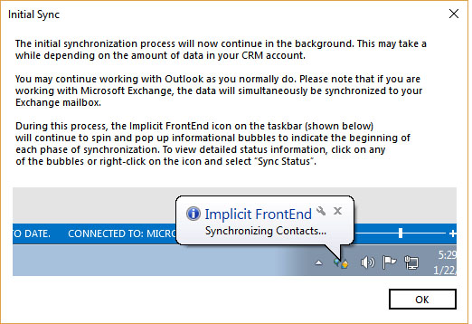 initially synced from CRM to Outlook. Upon competition of the initial sync