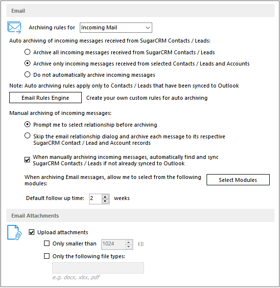 each module. - Email Archiving Engine rules