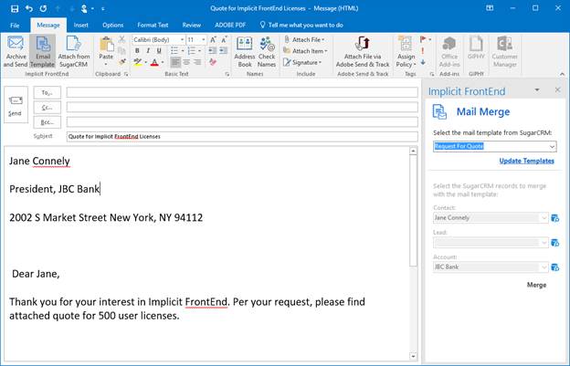 Installing the Implicit FrontEnd Outlook Add-In