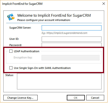 Upon clicking OK, FrontEnd will attempt to login to SugarCRM. If you receive an error