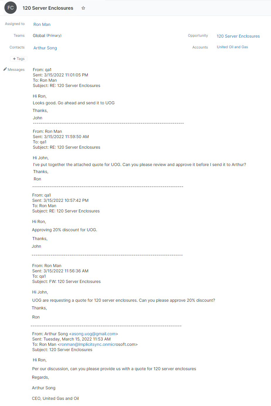 them directly on the CRM.