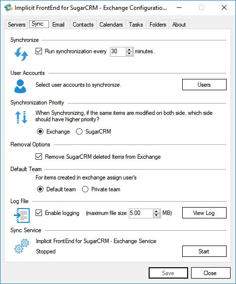• Stop/Start service – You may stop and start Implicit Synchronization system service from within the configuration tool