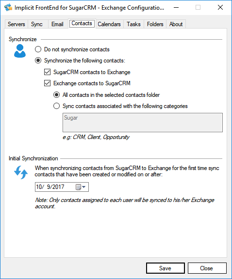 • Exchange Contacts to SugarCRM – Synchronize contacts from Exchange to CRM