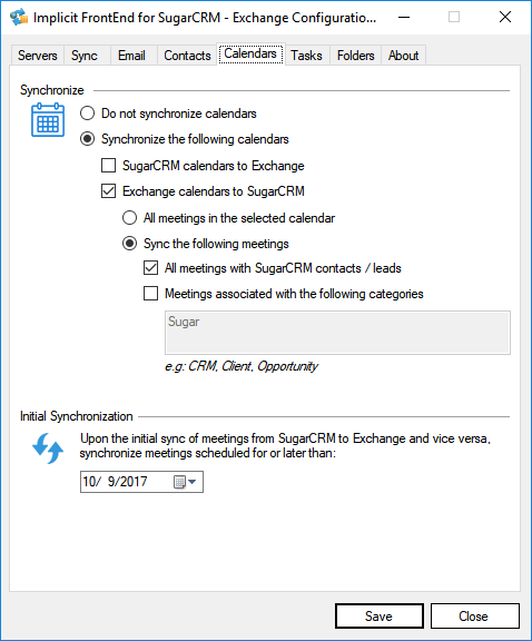 • Exchange calendars to SugarCRM – Synchronize calendars from Exchange to CRM
