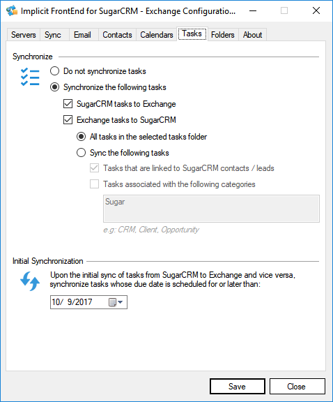 • Exchange tasks to SugarCRM – Synchronize tasks from Exchange to CRM